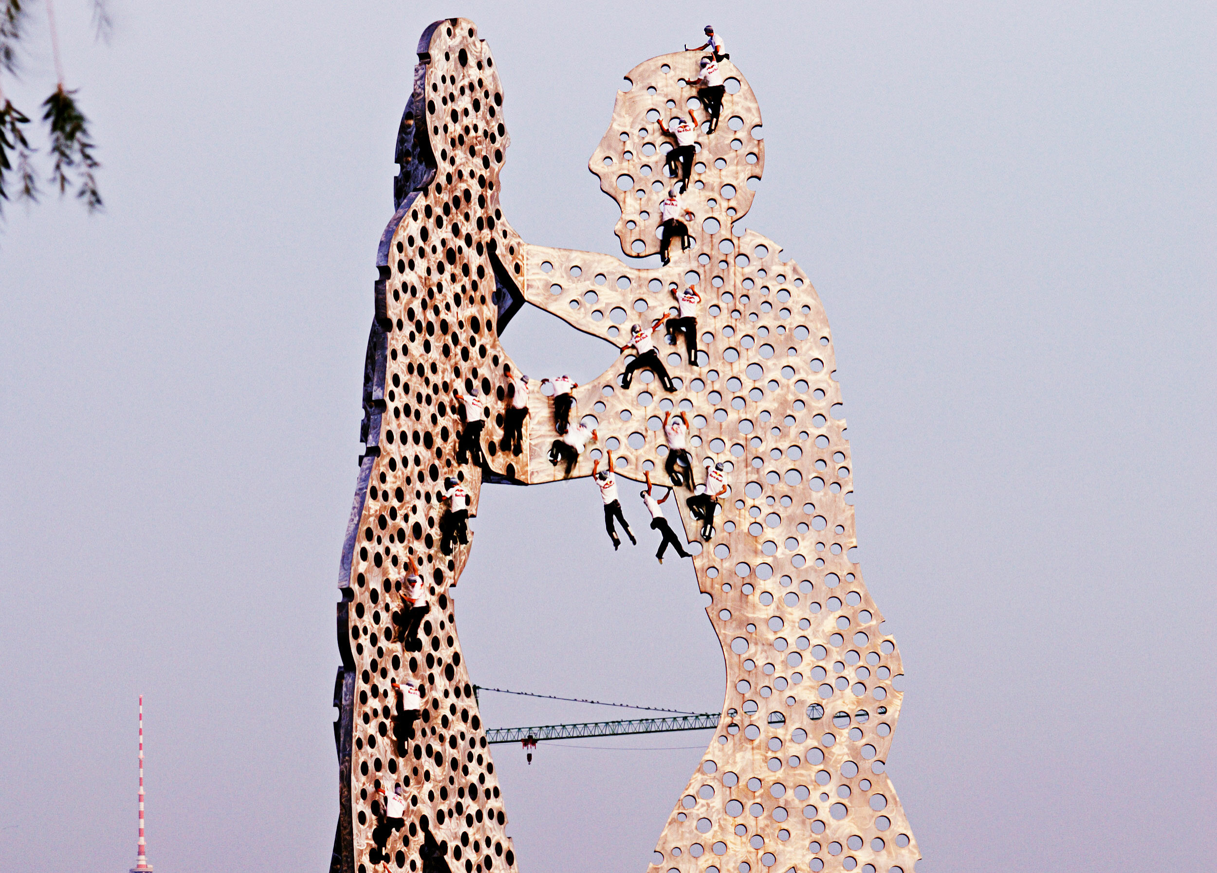 That would be a great picture my friend told me, while we were on a sightseeing tour in Berlin. A few days later I climbed the Molecule Man statue in the early morning. It was a special event in my life and the view from the top over Berlin was just a unique ... so was the boat ride. 🙂