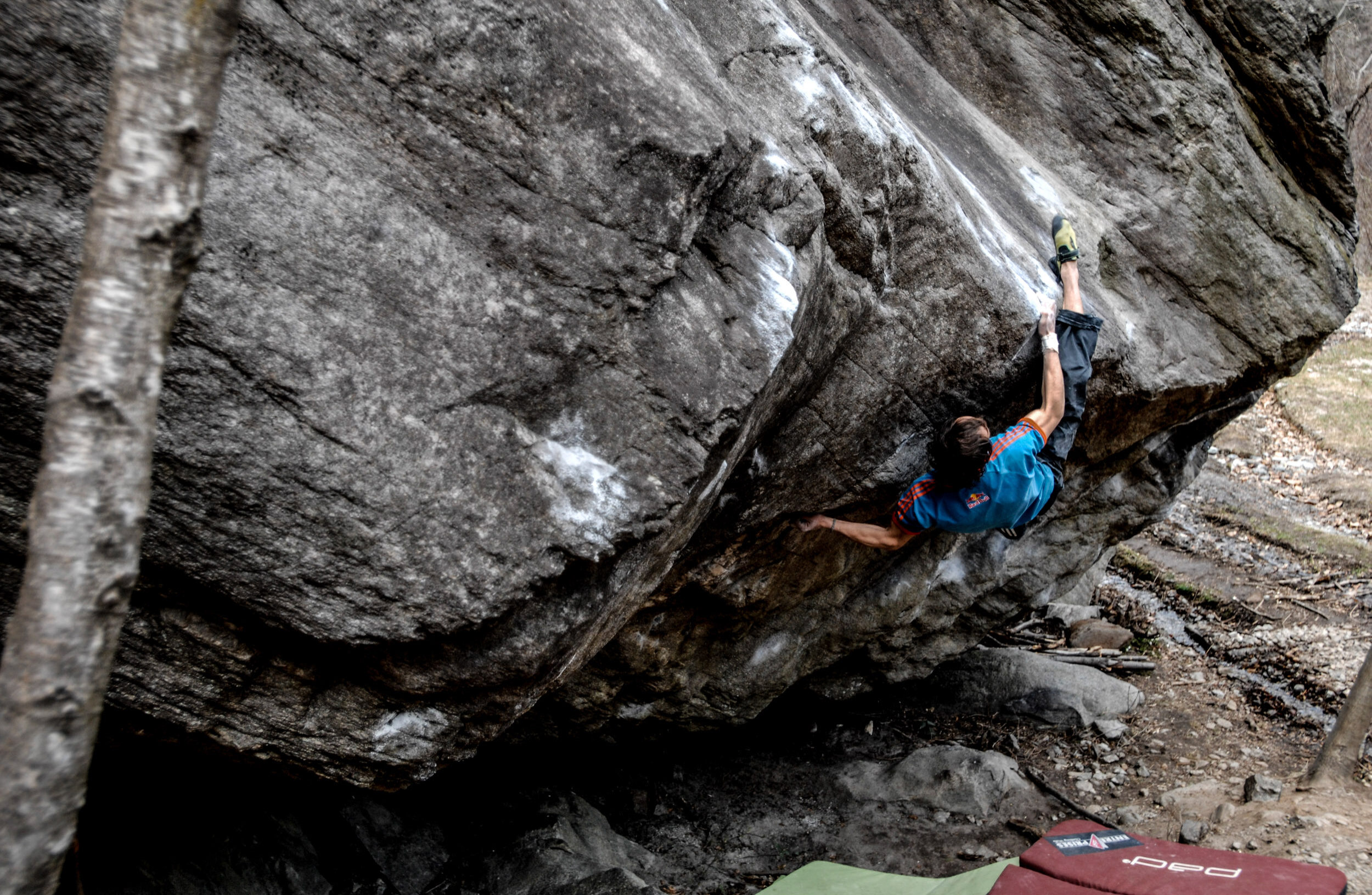 Il Colonel, in the Italian region of Piemont, is an uncompromising dream of a climb. Italian Niky Ceria put up the standstart back in 2017, and right after climbing the standstart, I started looking for a way to solve this sitstart problem. I already had a possible sequence in my mind back in 2015, but I was just too weak after the accident to do so. It remained a dream until 2019. After lots of training and rehabilitation I finally was able to add two super hard moves to the existing boulder problem.